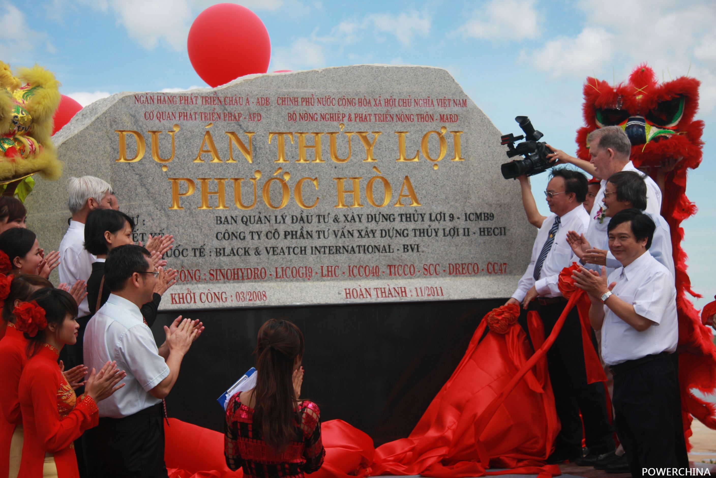 2011年12月10日上午10時越南福和閘堰項目一階段工程在進水口景觀臺舉行了盛大的竣工典禮。有來自農(nóng)業(yè)部,農(nóng)業(yè)部建設(shè)九局以及其各個兄弟單位,平福平陽龍安西寧胡志明的五省官員,亞洲開發(fā)銀行代表,法國開發(fā)署代表,監(jiān)理公司BVI代表,承包商中水集團代表等300人參加慶典。