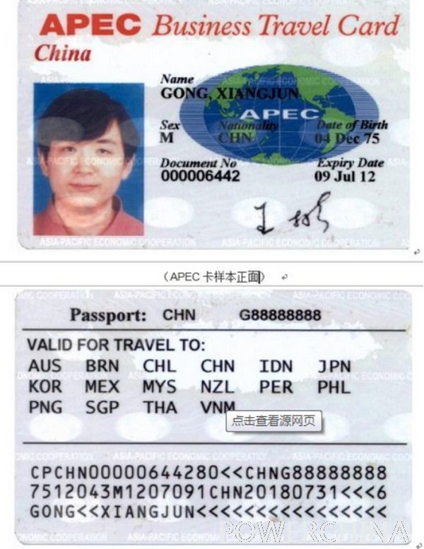 APEC商務(wù)旅行卡(APEC Business Travel Card)簡稱APEC卡是亞太經(jīng)合組織工商理事會于1996年向APEC領(lǐng)導(dǎo)人會議提出的一項(xiàng)重要建議,旨在便利APEC范圍內(nèi)各經(jīng)濟(jì)體的商務(wù)人員往來。APEC商務(wù)旅行卡(以下)持卡人憑有效護(hù)照及相應(yīng)旅行卡在五年內(nèi)無須辦理入境簽證,可自由往來于已批準(zhǔn)入境的各APEC經(jīng)濟(jì)體之間,并在主要機(jī)場出入境時(shí)享有APEC卡專用通道、快速通關(guān)的待遇。