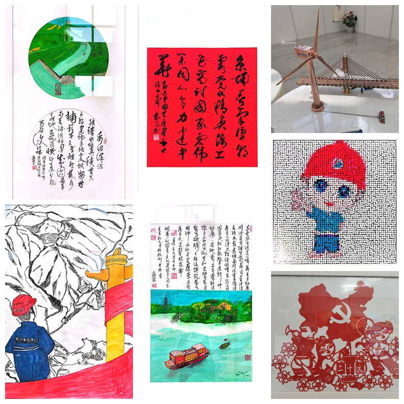豪情滿懷迎盛會,翰墨光影頌華章。10月17日,水電十二局舉辦的“喜迎二十大、永遠(yuǎn)跟黨走、奮進(jìn)新征程”職工文化藝術(shù)展在公司總部開展。一幅幅書法作品遒勁有力,一幅幅繪畫作品灑脫自如,一件件手工作品創(chuàng)意精巧,一張張攝影作品直抵心間,一個個文藝作品鮮活生動,傳遞出水電十二局人喜迎二十大、奮進(jìn)新征程的豪情壯志。 退休老干部揮墨書寫《老黨員的崢嶸歲月》,表達(dá)對中國共產(chǎn)黨的赤誠之心;隗工將十二局建造的新安江水電站、紫坪鋪水電站和兩河口水電站搬上畫卷,把水電人對工程的自豪和眷戀創(chuàng)作成詩,形成畫作《壩業(yè)豐碑》;陳工拿起焊槍把對新能源事業(yè)的一腔熱忱焊接成風(fēng)車《迎風(fēng)》;程工用照片記錄引江濟(jì)淮項目《從無到有,向祖國獻(xiàn)禮》全過程;一大批職工用一幅幅紅色的剪紙作品向祖國獻(xiàn)禮,鐫刻出心底的聲音,形成《喜迎二十大,永遠(yuǎn)跟黨走》《實干迎盛會》《百年榮耀筑黨魂》《盛世中華》等系列作品。 本次文藝作品共征集到書法、繪畫、攝影、手工、網(wǎng)絡(luò)文藝作品等5大類近200余件。經(jīng)過認(rèn)真篩選,共展出優(yōu)秀作品114件,呈現(xiàn)了一場內(nèi)容豐富、風(fēng)格多樣、深蘊情感的藝術(shù)盛宴。現(xiàn)場的職工們饒有興趣地參觀欣賞,在一幅幅作品前駐足凝神,或熱切交流,或品味學(xué)習(xí),或拍照留影,在翰墨丹青、捕光逐影中汲取奮進(jìn)營養(yǎng)、領(lǐng)略藝術(shù)魅力。每一位職工既是觀眾也是評委,都可以為自己喜歡的作品投上寶貴一票。 以筆墨寫豪情,以色彩摹氣概,以光影映奮發(fā),以手作印匠心,以文藝展蓬勃,全體十二局人以黨的二十大勝利召開為契機,不忘初心、牢記使命,將奮斗之志,創(chuàng)造之力,發(fā)展之果凝聚為感恩奮進(jìn)的精神力量,全面貫徹新發(fā)展理念,構(gòu)建新發(fā)展格局,推進(jìn)高質(zhì)量發(fā)展,為早日建設(shè)產(chǎn)業(yè)多元化、管理數(shù)字化、經(jīng)營國際化的現(xiàn)代化一流企業(yè)而努力奮斗!