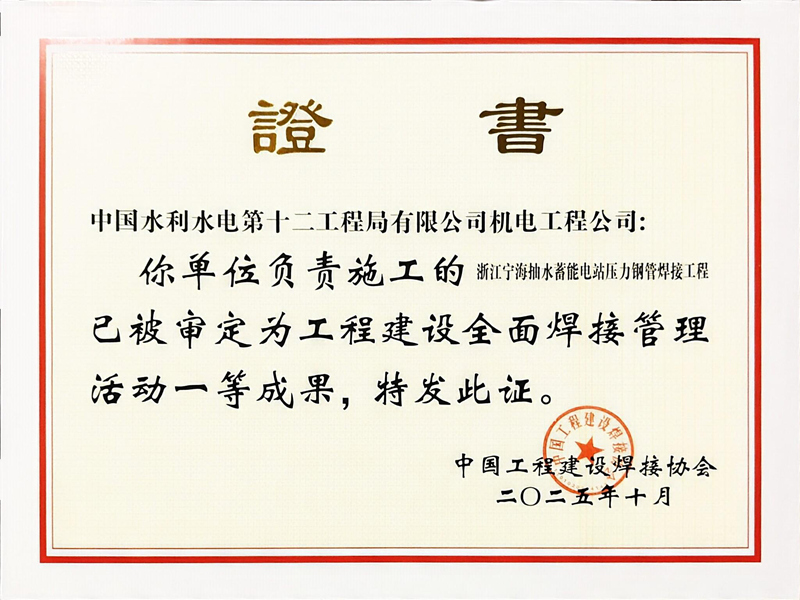 近日,中國工程建設(shè)焊接協(xié)會在北京召開2025年度工程建設(shè)全面焊接質(zhì)量管理活動成果發(fā)布暨經(jīng)驗交流會,由水電十二局承建的浙江寧海抽水蓄能電站壓力鋼管焊接工程榮獲“工程建設(shè)全面焊接管理活動2025年度一等成果”。 本工程壓力鋼管共1.35萬噸,其中600兆帕、800兆帕高強度鋼壓力鋼管8374噸。為確保焊接質(zhì)量,水電十二局機電工程公司在建設(shè)過程中始終堅持以高標準、高質(zhì)量為導(dǎo)向,從焊接工藝評定、焊接工藝選擇、焊工技能管控、洞內(nèi)焊接機器人應(yīng)用、焊接質(zhì)量檢查等焊接重點出發(fā),逐一破解工期緊、焊接量大、高強鋼厚板焊接等多項難題。施工過程中,項目團隊始終秉持全面焊接過程質(zhì)量管理理念,確保每條焊縫均達到國家及行業(yè)標準。 優(yōu)秀焊接工程獎是我國工程建設(shè)焊接最高質(zhì)量榮譽,每年度評審一次。該獎項由中國工程建設(shè)焊接協(xié)會按照“優(yōu)中選優(yōu)”和公開公正公平原則,經(jīng)過資料檢查、初審、復(fù)審、擬定評價、成果答辯、審定評價、公示等流程進行評定。