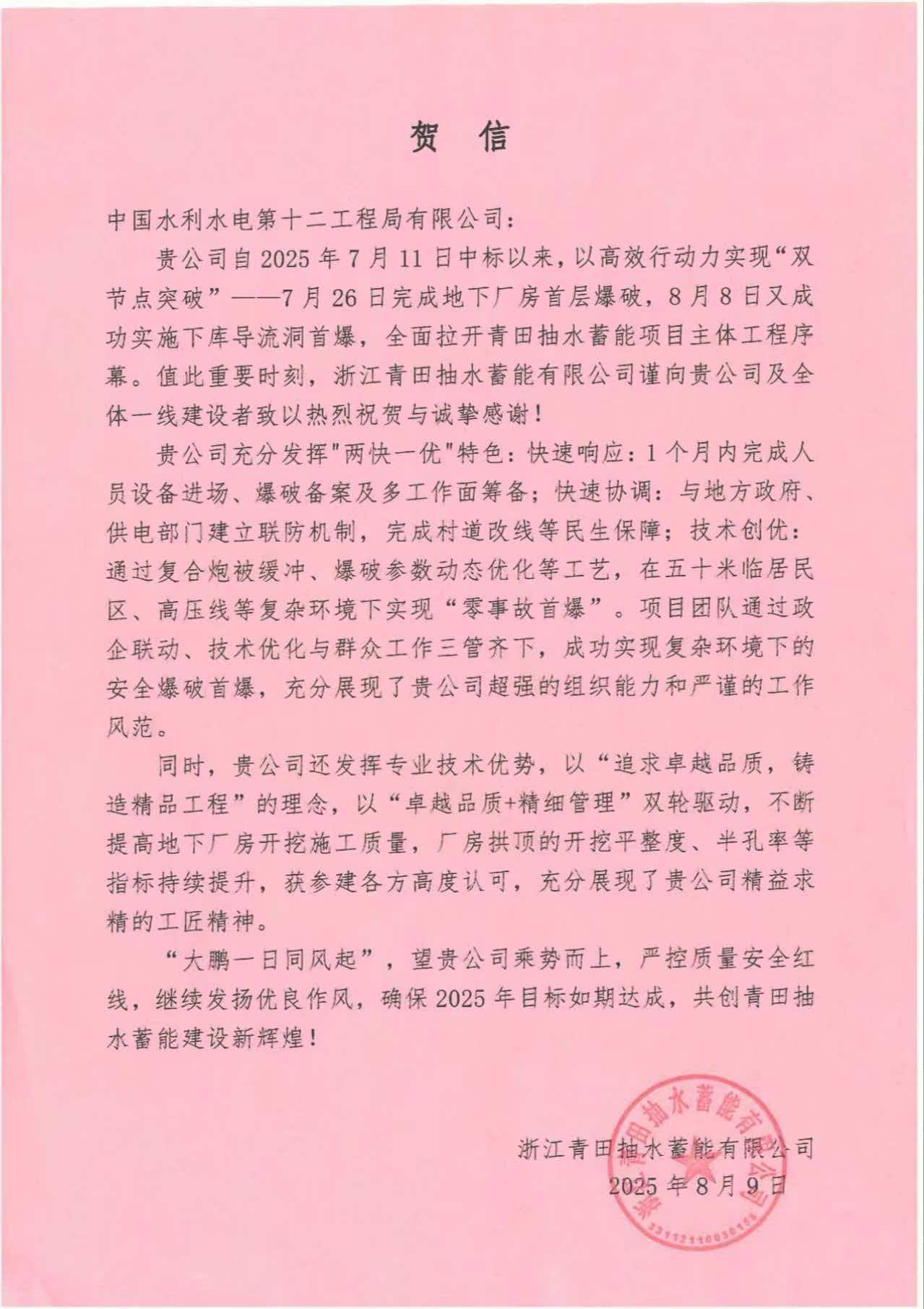11月20日,浙南群山間,隨著最后一茬爆破的轟鳴聲精準落定,巖渣清運工作有序收尾,由中國水利水電第十二工程局有限公司承建的浙江青田抽水蓄能電站地下廠房工程迎來里程碑式突破—主副廠房第Ⅰ層開挖較合同計劃提前42天全面完成! 這一關鍵節(jié)點的超前實現,不僅標志著電站建設從“地下攻堅”階段正式邁入“結構成型”新階段,更以實打實的“十二局速度”為電站首臺機組發(fā)電目標筑牢根基,盡顯水電十二局在抽水蓄能領域深耕多年的專業(yè)實力與央企品牌擔當。 浙江青田抽水蓄能電站是浙江省“十四五”能源發(fā)展規(guī)劃的重點項目,更是全省“千項萬億”工程的重要組成部分,承載著國家能源戰(zhàn)略與區(qū)域發(fā)展使命。電站建成投運后,將主要承擔華東電網調峰、填谷、調頻、調相及緊急事故備用等核心任務,成為區(qū)域電網安全穩(wěn)定運行的“穩(wěn)定器”,以及風電、光伏等新能源消納的“調節(jié)器”,為浙江省能源結構向清潔化、低碳化轉型,如期實現“雙碳”目標提供硬核支撐。 高效履約跑出建設“加速度” 浙江青田抽水蓄能電站項目依托中國電建聯合體推進,致力于將項目打造為抽水蓄能電站EPC總承包模式的典范工程。作為國家一等大(1)型工程,青田抽蓄電站總裝機1200兆瓦,樞紐含上下水庫、輸水系統(tǒng)、地下廠房等建筑,其中上水庫正常蓄水位560米、死水位524米,下水庫正常蓄水位112米、死水位84米,上下水庫調節(jié)庫容均達929萬立方米,具備高效的日調節(jié)能力。 2025年7月,水電十二局中標青田抽蓄電站地下廠房工程,隨即以“時不我待、只爭朝夕”的勁頭迅速進入戰(zhàn)斗狀態(tài)。中標僅一個月時間,項目團隊便完成了人員設備調集、爆破備案及多工作面籌備等全流程前期工作,用高效的組織能力為工程開工按下“快進鍵”。 7月26日,地下廠房“鏡面爆破”成功實施,實現“首爆即優(yōu)、起步即標桿”;8月8日,下庫導流洞首爆順利完成,全面拉開主體工程建設序幕—短短十余天內實現“雙節(jié)點突破”,這一亮眼成績不僅讓業(yè)主單位浙江青田抽水蓄能有限公司專門發(fā)來賀信點贊,更印證了水電十二局“快速響應、快速協調、技術創(chuàng)優(yōu)”的“兩快一優(yōu)”特色。 面對長178米、寬24.5米、高58.85米的巨型地下洞室開挖任務,項目部始終堅守“安全為先、質量為本、效率為要”的原則,創(chuàng)新采用“中導洞先行、兩側分層擴挖”的精細化工法,配套投入三臂鑿巖臺車、濕噴機械手等先進施工裝備,構建起“科學決策-高效執(zhí)行-全程監(jiān)督”的管理閉環(huán)。 從爆破參數的精準測算,到巖渣清運的有序調度,再到各工作面的協同配合,每一個環(huán)節(jié)都做到環(huán)環(huán)相扣、無縫銜接,最終實現主副廠房第Ⅰ層開挖提前42天完工,將“十二局速度”鐫刻在青田抽蓄的建設現場。 毫米級管控筑牢質量“生命線” 速度的背后,是對質量的極致追求。水電十二局深知抽水蓄能電站地下工程“差之毫厘,謬以千里”,因此將技術創(chuàng)新與工藝優(yōu)化貫穿施工全過程,以“十二局標準”打造精細施工新標桿。 在爆破施工環(huán)節(jié),項目團隊先開展多輪爆破工藝試驗,反復校準鉆孔精度,最終將鉆孔誤差控制在30毫米以內,半孔率穩(wěn)定保持在90%以上,炮孔利用率高達95%,實現對超欠挖的毫米級管控。這意味著每一個炮孔的位置、深度、角度都精準可控,既減少了巖體損傷,又降低了后續(xù)支護成本,更保障了洞室結構安全。 面對浙南復雜的地質條件,項目團隊成立地質預報專項小組,運用地質雷達開展超前探測,提前研判巖體走向、裂隙分布等地質情況,做到“研判精準、支護及時”。在支護階段,摒棄傳統(tǒng)單一支護方式,創(chuàng)新采用“錨桿+鋼筋網+納米粗纖維噴混凝土”聯合支護體系,并實施動態(tài)設計——針對不良地質段及時調整支護參數,確保洞室始終處于穩(wěn)定狀態(tài)。 從開挖到支護,從工藝到管理,項目實現了安全“零隱患”、質量“零缺陷”的雙零目標。 復雜環(huán)境下實現施工“零擾動” 青田抽蓄電站項目地處僑鄉(xiāng),項目部積極參與青田縣打造新世代“楓橋經驗”僑鄉(xiāng)版治理品牌活動,踐行“防風險、護平安、保穩(wěn)定、促發(fā)展”。施工區(qū)域臨近居民區(qū)、高壓線等,爆破施工稍有不慎便可能影響周邊群眾生活、危及電力設施安全,這成為項目推進過程中的一大挑戰(zhàn)。 水電十二局始終將社會責任扛在肩上,以“十二局擔當”破解復雜環(huán)境施工難題。為降低爆破影響,團隊創(chuàng)新采用復合炮被防護技術,通過多層緩沖材料減少爆破沖擊波與飛石風險;同時建立爆破參數動態(tài)優(yōu)化機制,根據不同施工段的環(huán)境特點調整炸藥用量、起爆方式,最大限度降低振動影響。 此外,項目主動與地方政府、供電部門建立聯防聯控機制,提前溝通施工計劃,妥善完成村道改線等民生工程,既保障施工順利推進,又維護了周邊群眾的切身利益。 從 7 月首爆到 11 月主副廠房第Ⅰ層開挖完工,項目在復雜環(huán)境下實現了爆破“零事故”、施工“零投訴”,用實際行動詮釋了“誠信、擔當、共贏、感恩”的企業(yè)精神,也讓央企的責任與溫度深入人心。 從浙南群山間的攻堅突破,到華東清潔