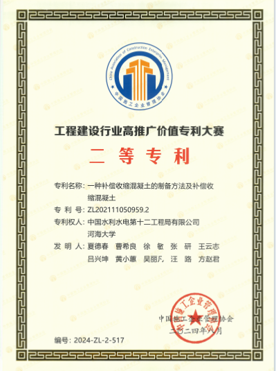 近日,公司新增一項(xiàng)工程建設(shè)行業(yè)高推廣價(jià)值專利《一種補(bǔ)償收縮混凝土的制備方法及補(bǔ)償收縮混凝土》。 該發(fā)明的特點(diǎn)是VF防裂劑的膨脹時(shí)間和膨脹量可以精準(zhǔn)控制,根據(jù)面板混凝土的自身體積變形,環(huán)境溫、濕度的變化等引起的不同時(shí)段收縮量來(lái)設(shè)計(jì)面板混凝土相應(yīng)時(shí)段的膨脹量,來(lái)提高面板補(bǔ)償收縮效果,達(dá)到真正意義上的收縮補(bǔ)償。解決了鈣礬石類早期膨脹無(wú)法有效儲(chǔ)存,氧化鎂類后期膨脹對(duì)面板混凝土幾乎沒有補(bǔ)償效果,而且應(yīng)用不當(dāng)容易造成混凝土膨脹破壞的問題。具有很強(qiáng)的實(shí)用性和較高的推廣價(jià)值,能快速轉(zhuǎn)化為現(xiàn)實(shí)生產(chǎn)力,推動(dòng)行業(yè)高質(zhì)量發(fā)展。 目前該專利成果已成功應(yīng)用于寧海抽蓄、縉云抽蓄、開化水庫(kù)等國(guó)家重點(diǎn)工程,取得混凝土結(jié)構(gòu)無(wú)縫或少縫效果,同時(shí)獲得了良好的經(jīng)濟(jì)效益和社會(huì)效益。 同時(shí),該專利參與了中國(guó)施工企業(yè)管理協(xié)會(huì)舉辦了“第四屆工程建設(shè)行業(yè)高推廣價(jià)值專利大賽”,榮獲二等專利榮譽(yù)。